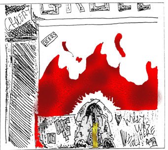 Voilà, pour donner l'ambiance. disons que l'immeuble est situé dans le vieux downtown (quartier B5 sur NC Sourcebook). C'est un quartier délabré, une rue délabrée, un immeuble délabré aux interphones délabrés (notez les accords !). Faites sentir aux cops que cc n'est qu'un quartier pourri de plus parmi tous les quartiers pourris de Night-City. Le gang local s'appelle les Maelströms : ce sont de gros cyber-bourrins de base qui ne craignent que les Inquisiteurs et les psycho-squads ... méfiance ! A l'entrée de l'immeuble, l'interphone est évidemment complètement explosé et n'importe qui rentre comme il veut. Le couloir n'est bien sûr pas éclairé et lorsque les cops arrivent devant la porte du N°02, ils se rendent compte qu'elle est entrouverte. A l'intérieur voici ce qu'ils vont trouver de plus marquant dans chacune des pièces (moyennant quelques jets de Perception (pour les indices) et de SF (pour ne pas dégueuler devant le cadavre)).